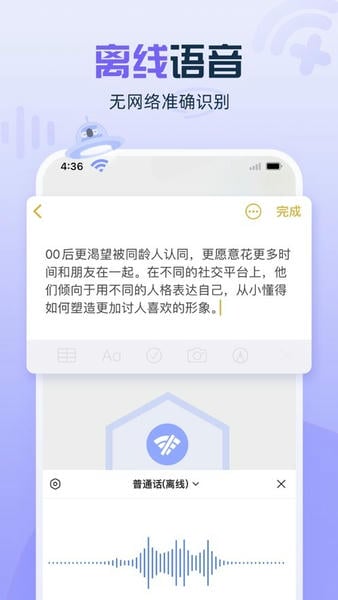 1分钟400字,语音输入带你飞;支持19种方言输入,能够听懂你的家乡话;支持随声译,说中文出英文!