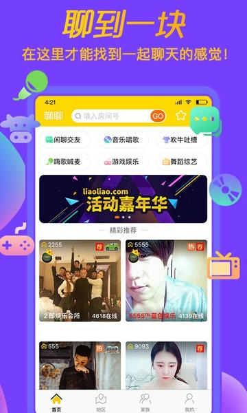 聊聊语音app是款聊天社交软件。聊聊语音app是由聊聊网推出来的掌上客户端,是中国最早的专业语音视频聊天交友服务网站,是非常时尚流行的语音聊天应用,让你的声音同时影响数千人;麦霸、mc的专属语音平台。
