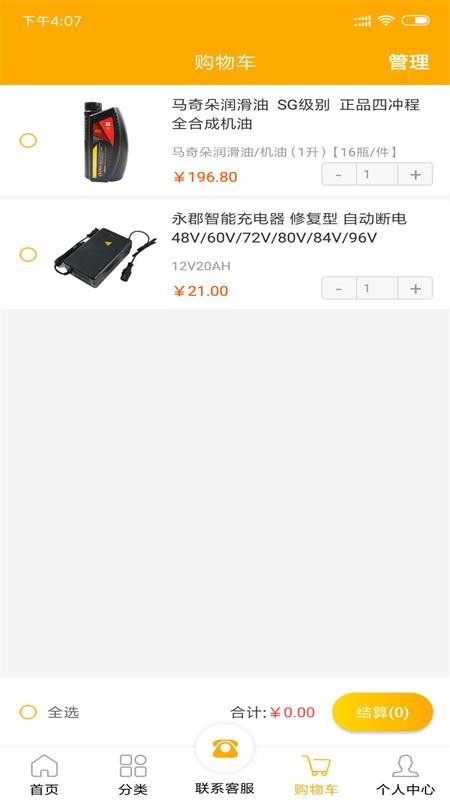 购物车管理,对添加的所有配件进行删除、支付等管理,操作简单方便;