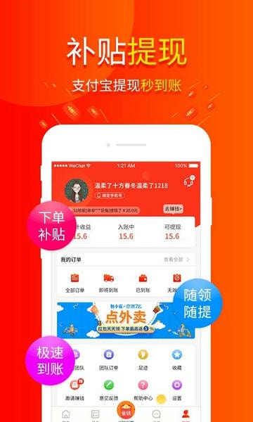 1、帮你赚钱―把优惠券分享给朋友,好友下单你也有补贴哦