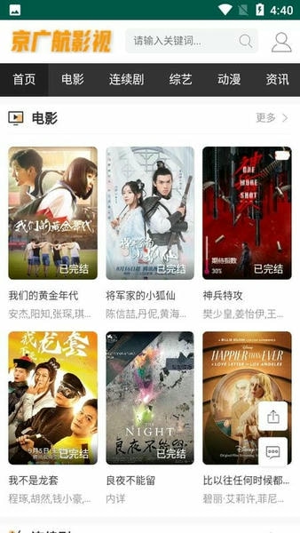 京广航影视是一款非常受欢迎的手机影视播放器,这里有全网热门影视资源,无需会员,全都免费看。无论是国内还是国外的影视作品,都有收录,资源全面,喜欢的朋友不要错过。