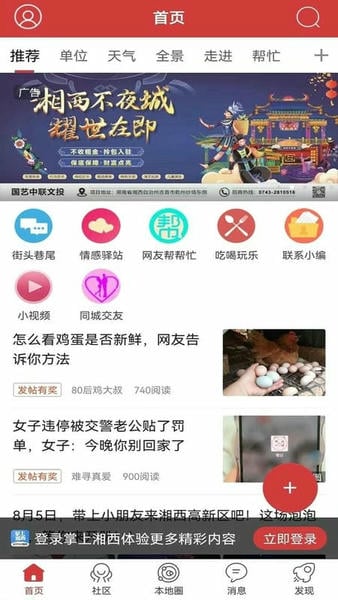 掌上湘西是为湘西本地人提供的生活服务软件,在其中每天都有本地的新闻信息,掌握时事动态,还可以跟同城人结交朋友,打趣聊天,也可以在其中发布美食进行分享,有需要的欢迎前来体验。