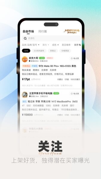 全渠道曝光:自由市场、同行圈、专题榜单与活动位多点覆盖,优质好货获得额外曝光。