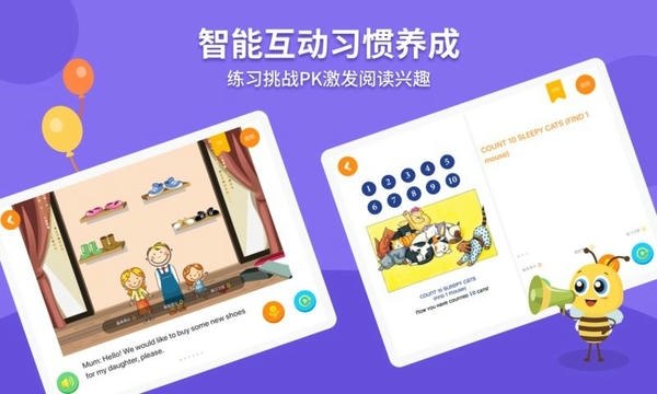 3、多维度激发学习动力:记录、统计、生成磨耳朵/阅读/口语存折,可录入其他设备数据;课程表功能帮助孩子学习规划并监督执行;AI评分功能,花蜜、金币奖励;广场晒作品,荣誉榜排名,参加活动奖励等