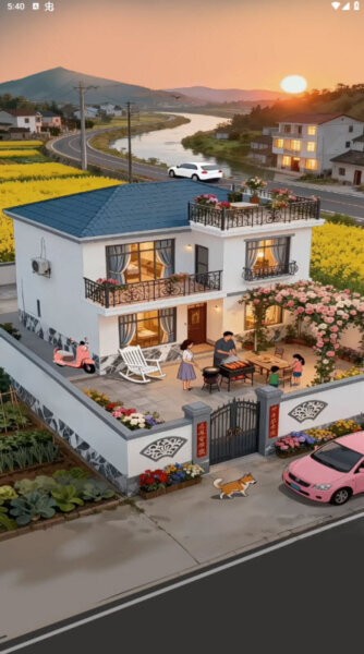 从画面上看,院子里有花架、露台、围墙小门、停靠的小车与机车,还有围着烧烤架忙碌的家人――这种“家在、灯亮、饭香”的氛围,就是本作最大的魅力:不需要高强度操作,也不要求你天天在线,只要每天抽一点时间,完成任务系统与日常规划,就能稳定积累资源,慢慢把农院经营成你理想中的模样。