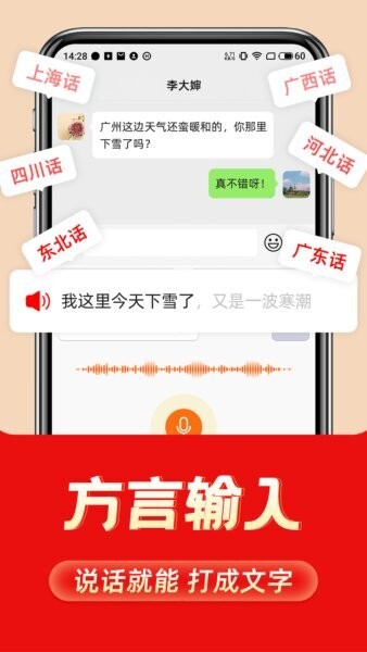 如意输入法支持普通话以及多种地方方言识别,例如四川话、广东话、东北话、上海话、河北话、广西话等,让不同地区的用户都可以使用熟悉的语言进行输入。同时,系统能够自动将语音转化为标准文字,方便在各种聊天软件和应用中使用。