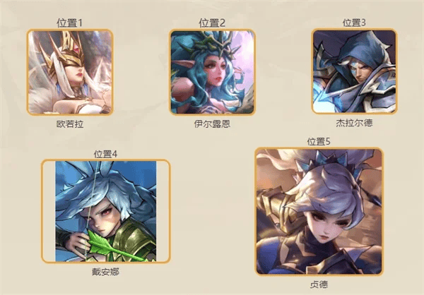2、鸟人「伊尔露恩」可以对敌人进行标记,降低防御力、让队友优先集火被标记的英雄。「贞德」是输出核心,拥有【连斩】效果,配合鸟人「伊尔露恩」的减防标记,使用斩杀技能进行收割。
