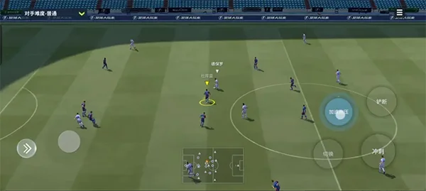 3、假动作:在盘带时,迅速向希望盘带的方向拨动摇杆,同时触碰到冲刺键,即可触发假动作。