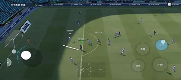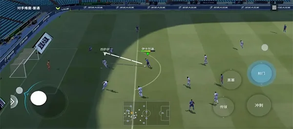 2、趟球:长按冲刺键并滑动,球员会进入冲刺模式。在冲刺模式下松开左摇杆,并迅速拨动左摇杆,即可触发趟球。