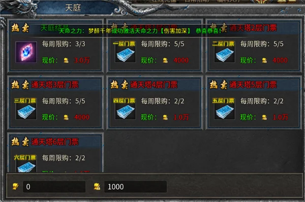 玩家可以通过消耗天命丹来升级天命,每次升级都会获得一定的属性加成。