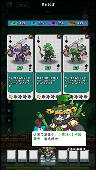 2、在游戏内开局会有三张卡牌给你选择,选择点数最大的那一个。