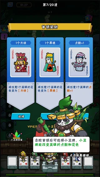 6、击败首领后可选择小丑牌,小丑牌能改变英雄的点数和花色。