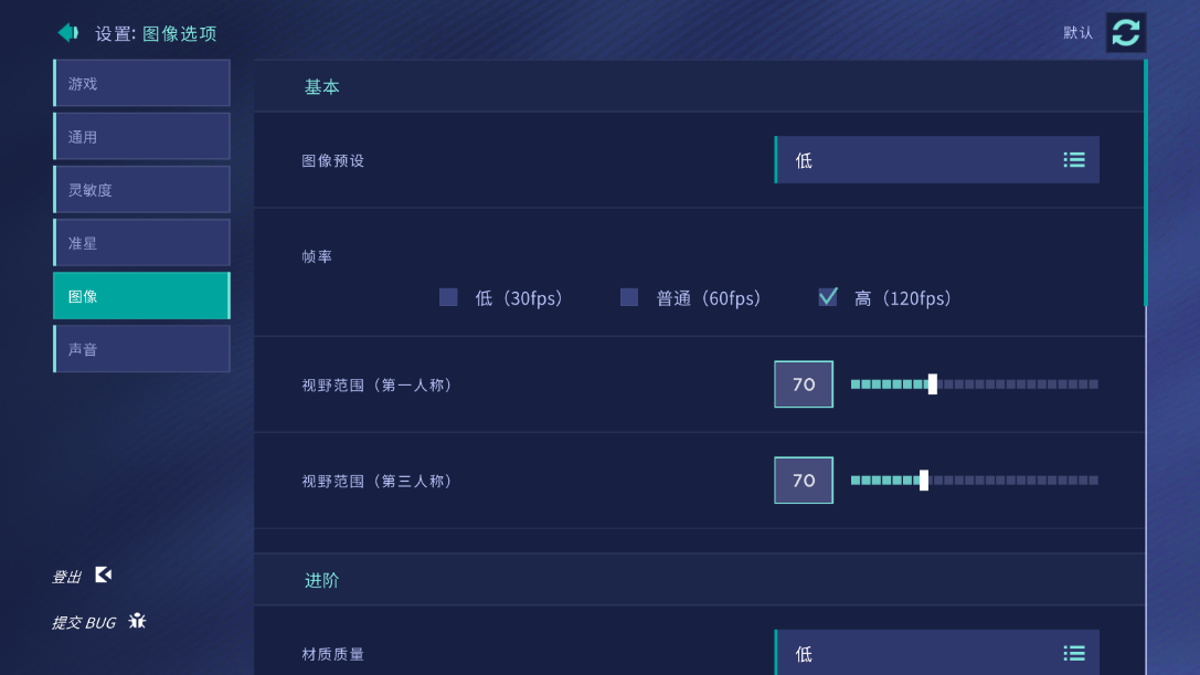 2、图像中可以设置第一人称和第三人称的视野范围(FOV),一般不用管,想要调整的话比较推荐设置成80