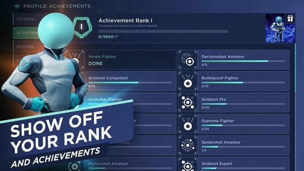 4、成就与徽章系统激励训练 Aim Lab Mobile 将训练目标拆分为数十个成就任务,从基础命中率到高难度连击关卡逐步解锁,对应奖励酷炫徽章与称号,让你像在传奇游戏或rpg游戏里那样不断“升级”,持续保持练习动力。