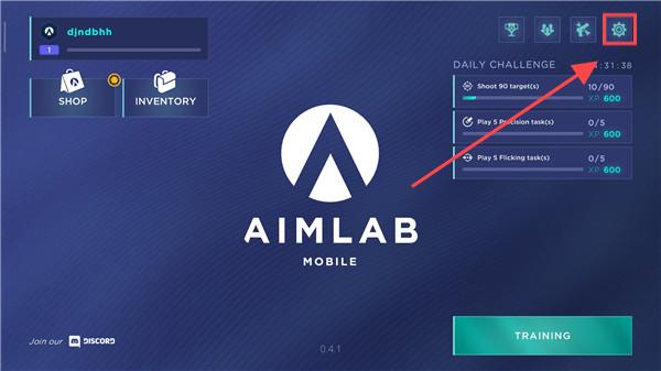 1、进入aimlabmobile,点击屏幕右上角的【齿轮】