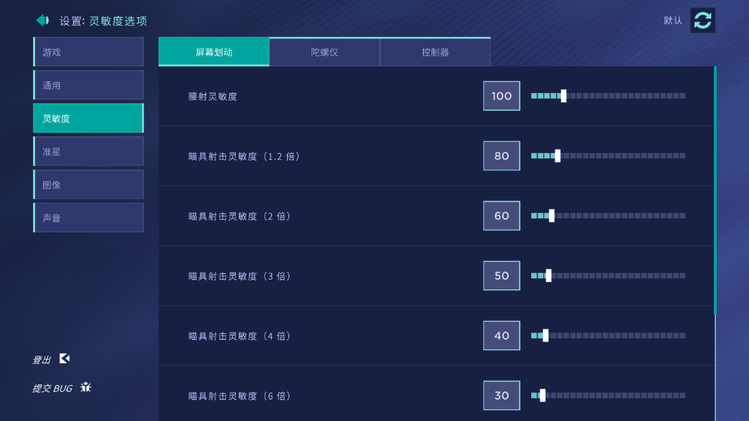 1、进入设置→灵敏度,根据个人操作习惯,设置屏幕滑动、陀螺仪或控制器的灵敏度