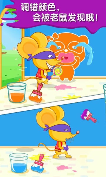 快来宝宝调色屋小游戏帮助熊猫妙妙吧。贪吃的老鼠要抢走妙妙的棒棒糖啦,宝宝们快混合不同的颜色,帮助妙妙躲过老鼠!