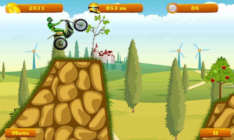 摩托跑酷里你没有竞争对手,要挑战的只有自己,细腻的画面处理让游戏感觉到不俗的视觉体验,玩家要驾驶摩托在沙漠戈壁,草原绿地,冰天雪地,原始森林等场景中飞驰。